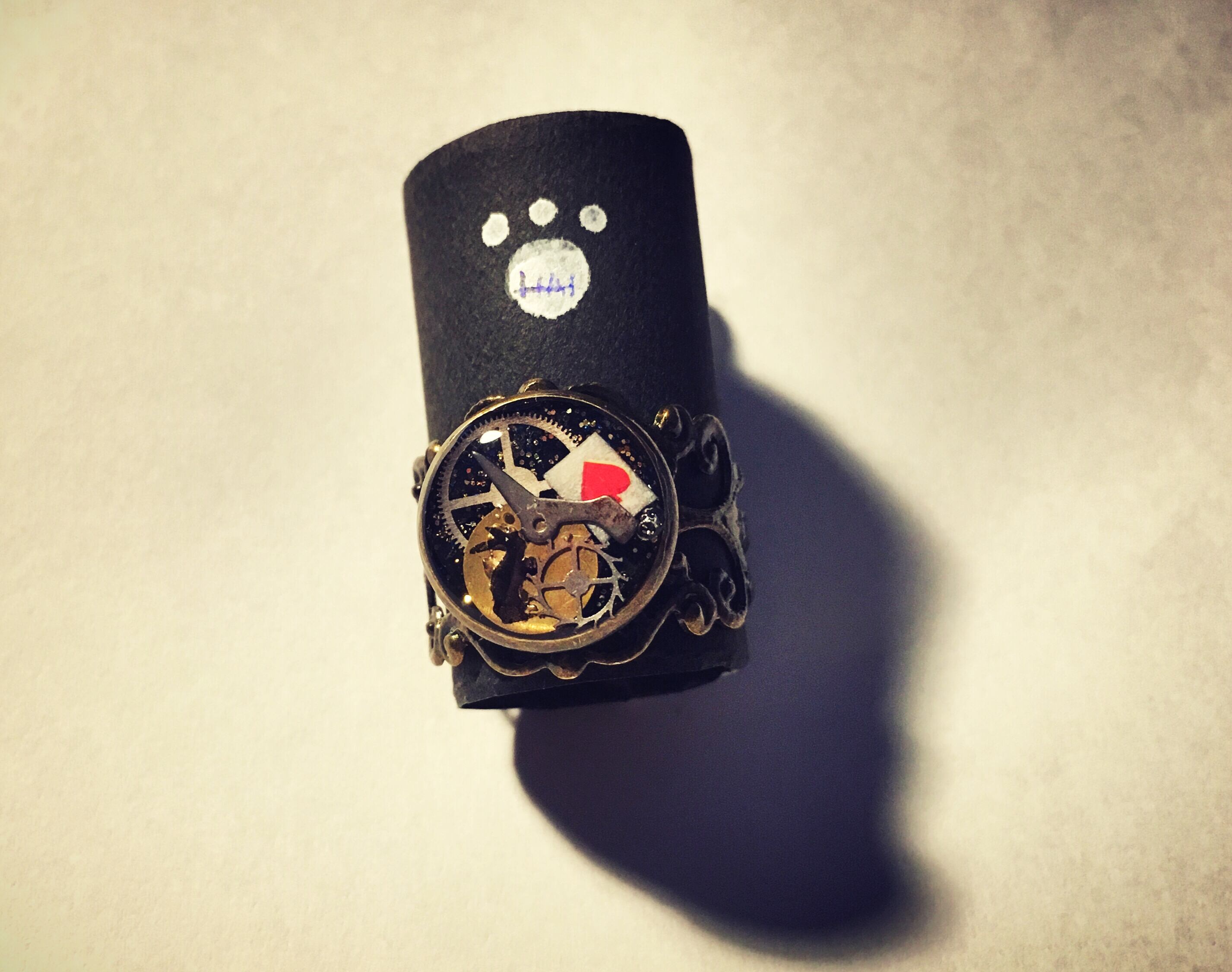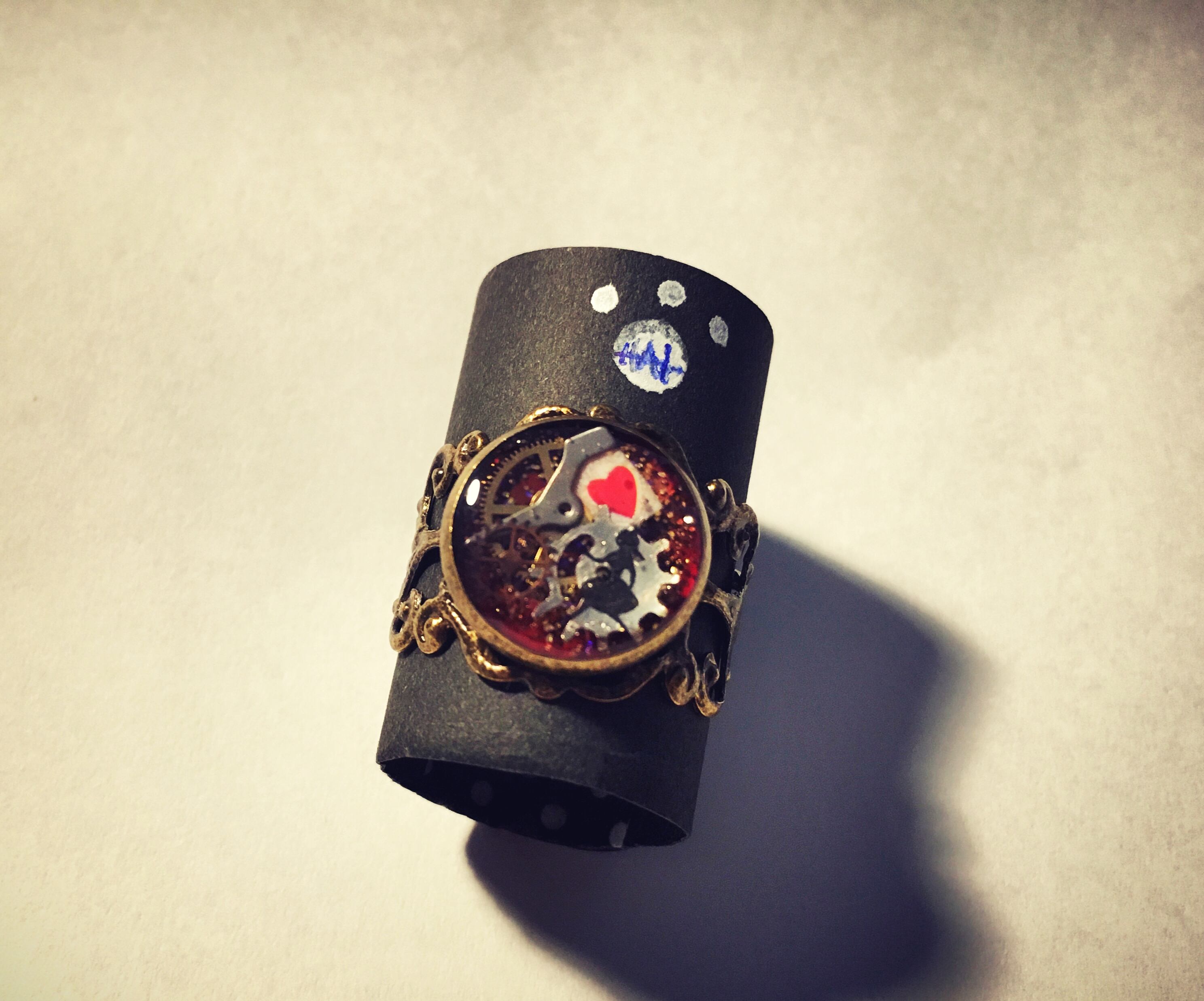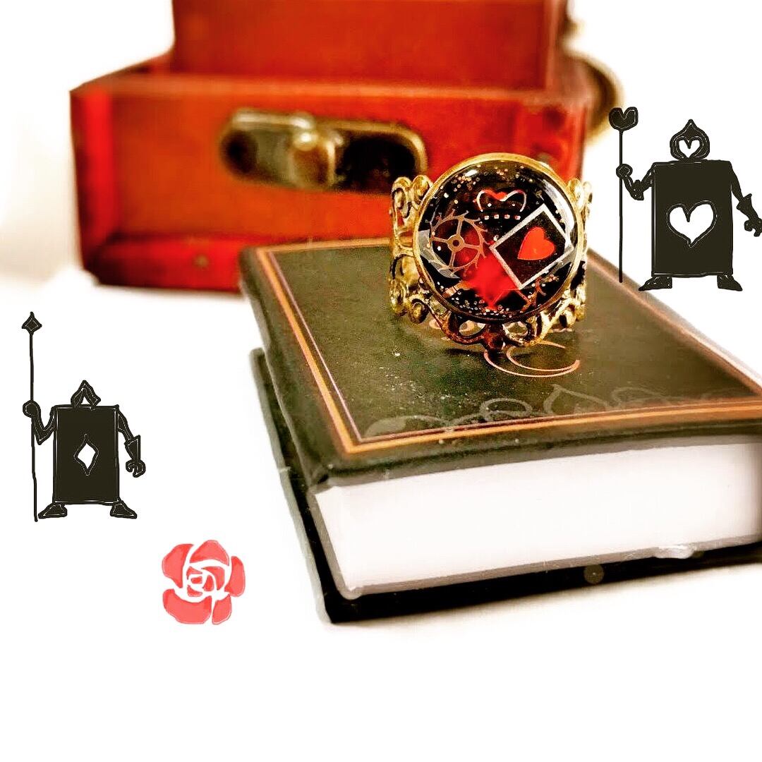 アンティーク調ブロンズカラーリング!リング部分はアリスモチーフ。